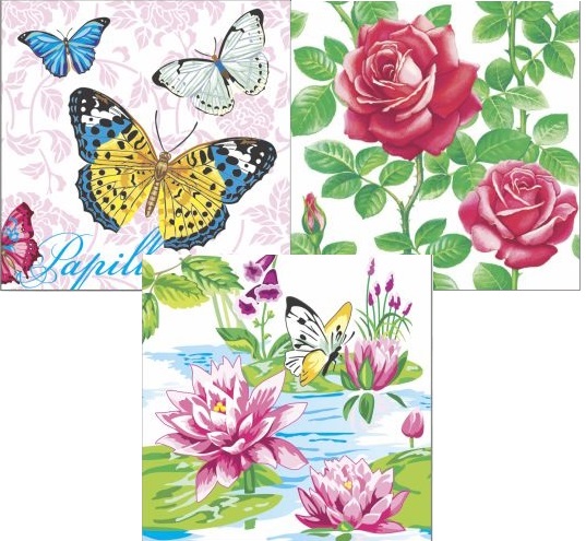Главная / Бумажная продукция / Салфетки / Салфетки бумажные 24*24 40л Desing с рисунком в ассортименте /32/