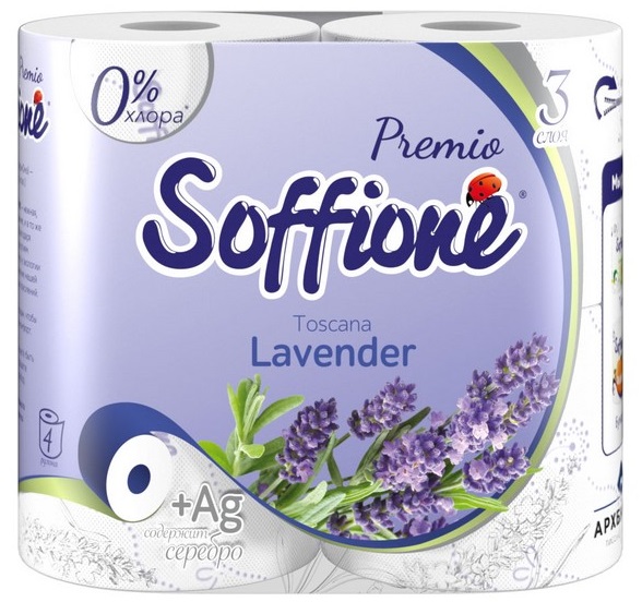 Главная / Бумажная продукция / Туалетная бумага / ТБ SOFFIONE PRЕMIO 16,8м 3 слоя 4 рулона ЛАВАНДА /10/ 10900943