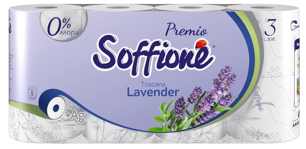 Главная / Бумажная продукция / Туалетная бумага / ТБ SOFFIONE PREMIO 16,8м 3сл 8 рул ЛАВАНДА /5/ 10900997