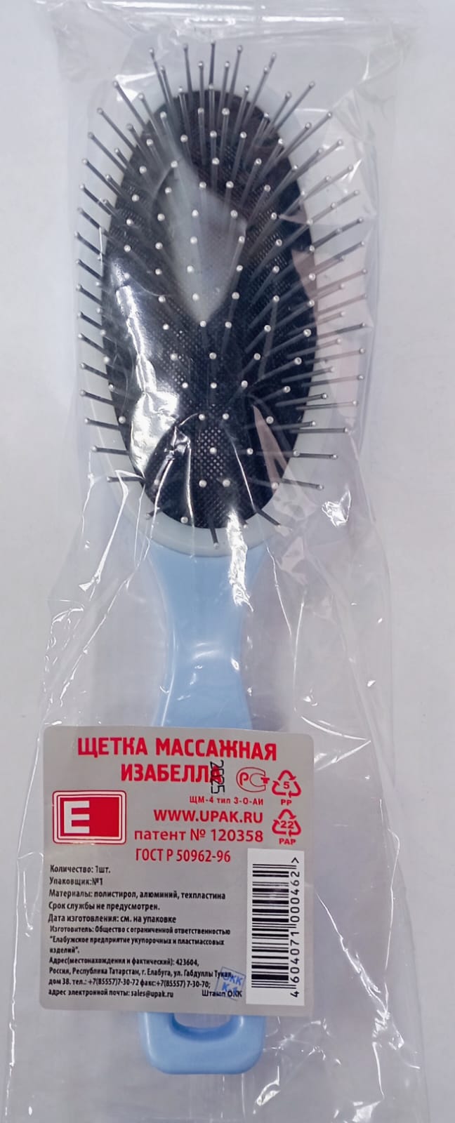 Щетка массажная для расчесывания волос и ежедневного ухода. Производится из высококачественного пластика с резиновой подушкой и осветленными алюминиевыми иглами с закругленным концом.