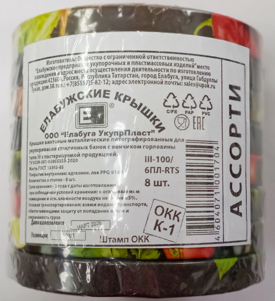 Металлические винтовые литографированные крышки для укупоривания стеклянных банок с венчиком горловины типа III-100, предназначены для укупоривания пастеризуемых пищевых продуктов.