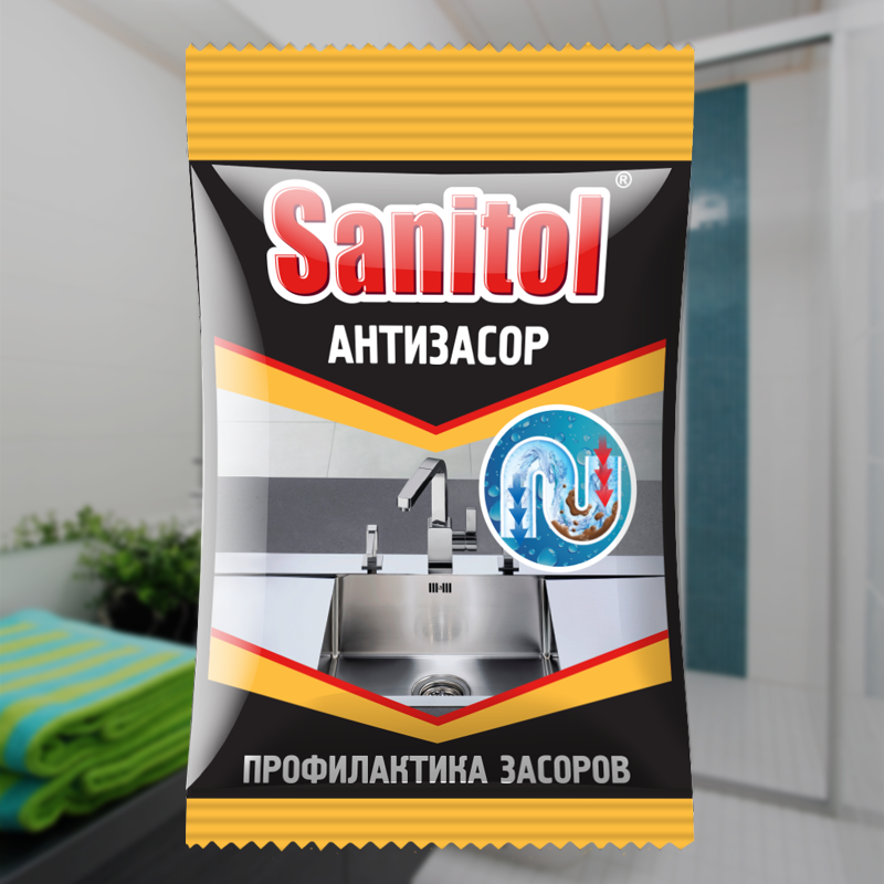Главная / Чистящие и моющие средства / Чистящие порошки / Чистящее средство Sanitol-Крот для труб, 90г/24/ЧС-152