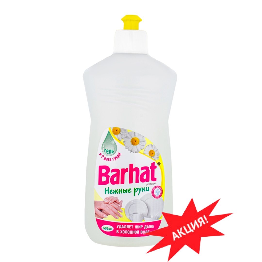 Моющее средство для мытья посуды Бархат Нежные ручки РОМАШКА эффективно удаляет жир даже в холодной воде, не раздражает кожу рук. Обладает уникальными моющими способностями.