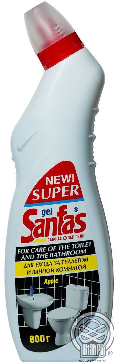СУПЕР 800г Санфас гель для сантехники, кафеля, ванн, душевых кабин (от ржавчины, грибка, солей, разводов)/12/