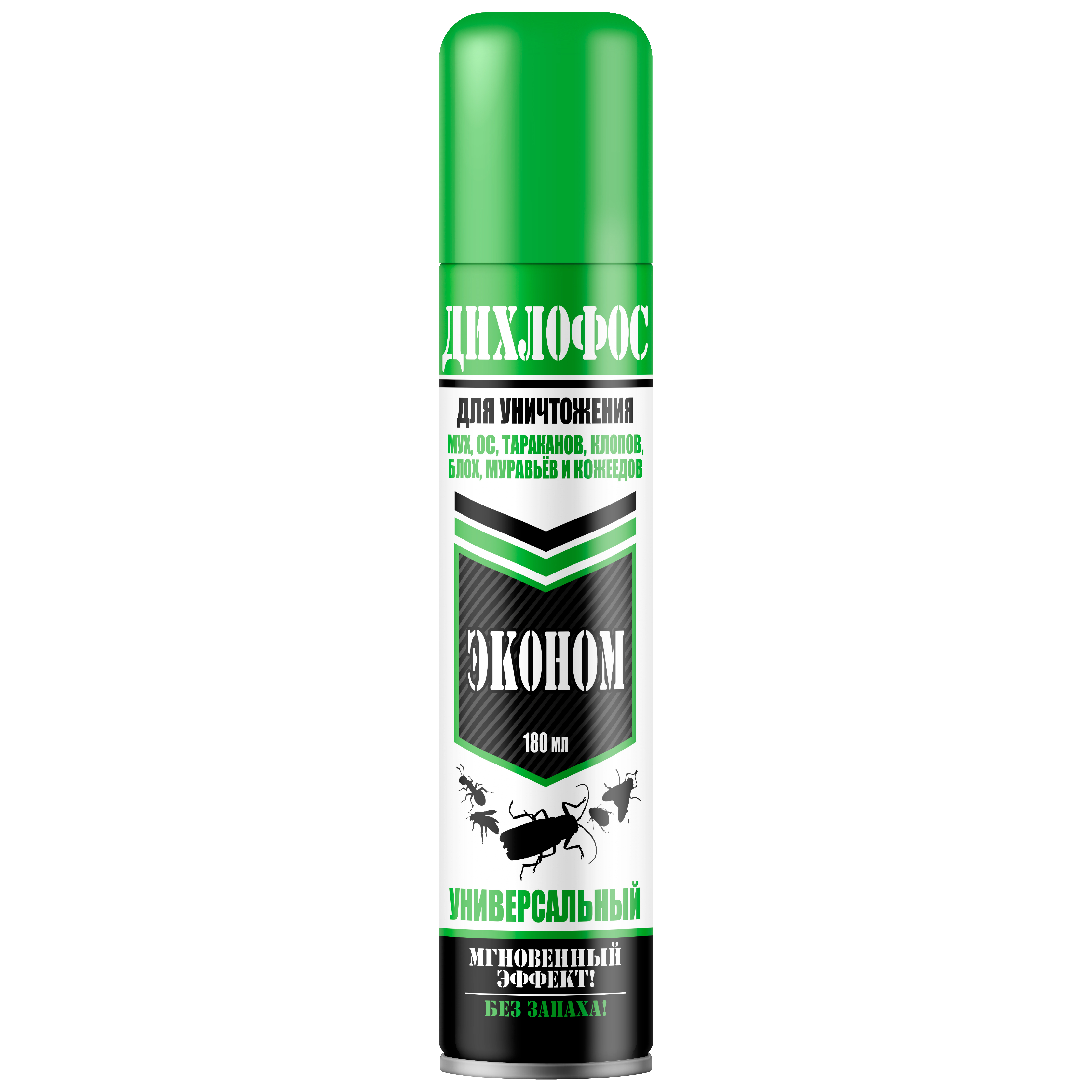 Дихлофос ЭКОНОМ универсальный БЕЗ ЗАПАХА предназначен для уничтожения мух, ос, тараканов, клопов, блох, муравьев,кожеедов.