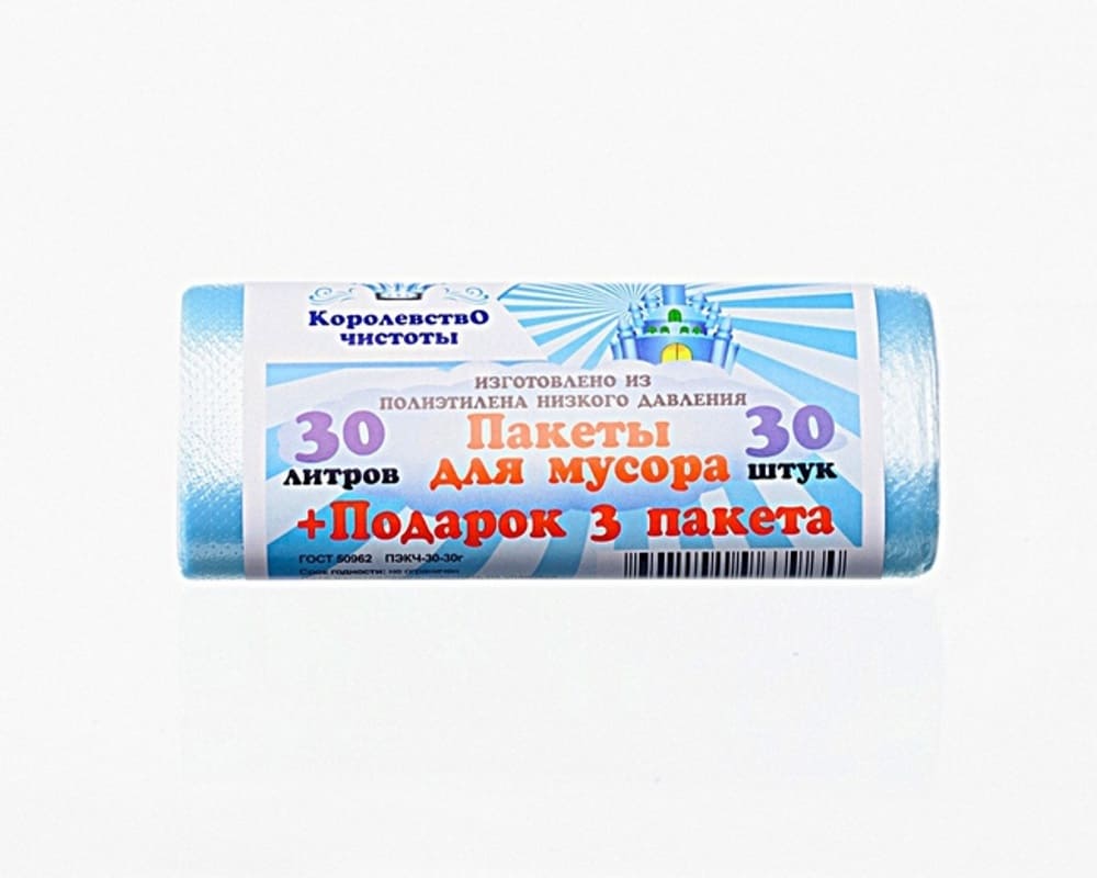 Уфа ПАК_КОРОЛЕВСТВО ЧИСТОТЫ Пакеты д/мусора 30 л.30 шт 48х56 синие/черные 5мкр (35)