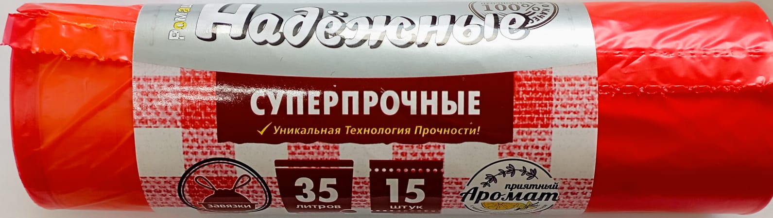 НАДЕЖНЫЕ Мешки для мусора 35л.15 шт с ЗАВЯЗКАМИ ПСД красные 18 мкр 50*53 вес 159гр/30/ В30351514