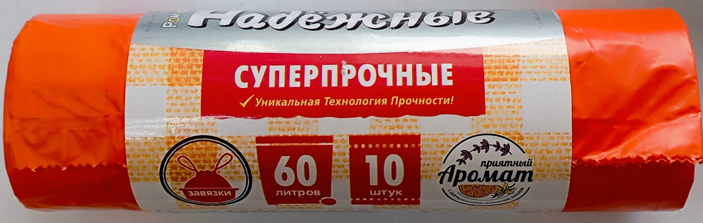 НАДЕЖНЫЕ Мешки для мусора 60л.10 шт с ЗАВЯЗКАМИ ПСД оранжевые 23 мкр 59*64 вес 184гр/24/ В30601016