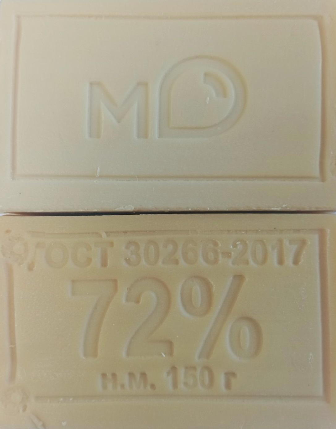 Мыло хозяйственное твердое жирность 72%. Изготавливается по ГОСТ 30266-2017.