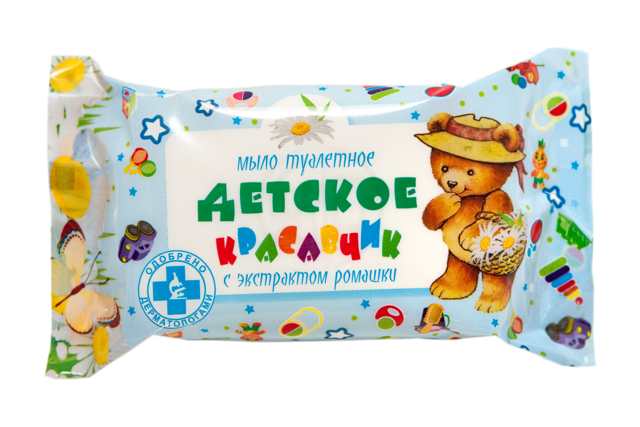 Мыло туалетное "Красавчик" марки "ДЕТСКОЕ" с экстрактом ромашки изготовлено из высококачественных натуральных жиров и масел