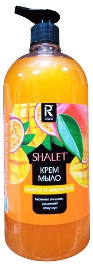 Главная / Мыло / Туалетное жидкое / SHALET Жидкое крем-мыло освежающее с курком Манго и Маракуйя 1л./8/ 3119