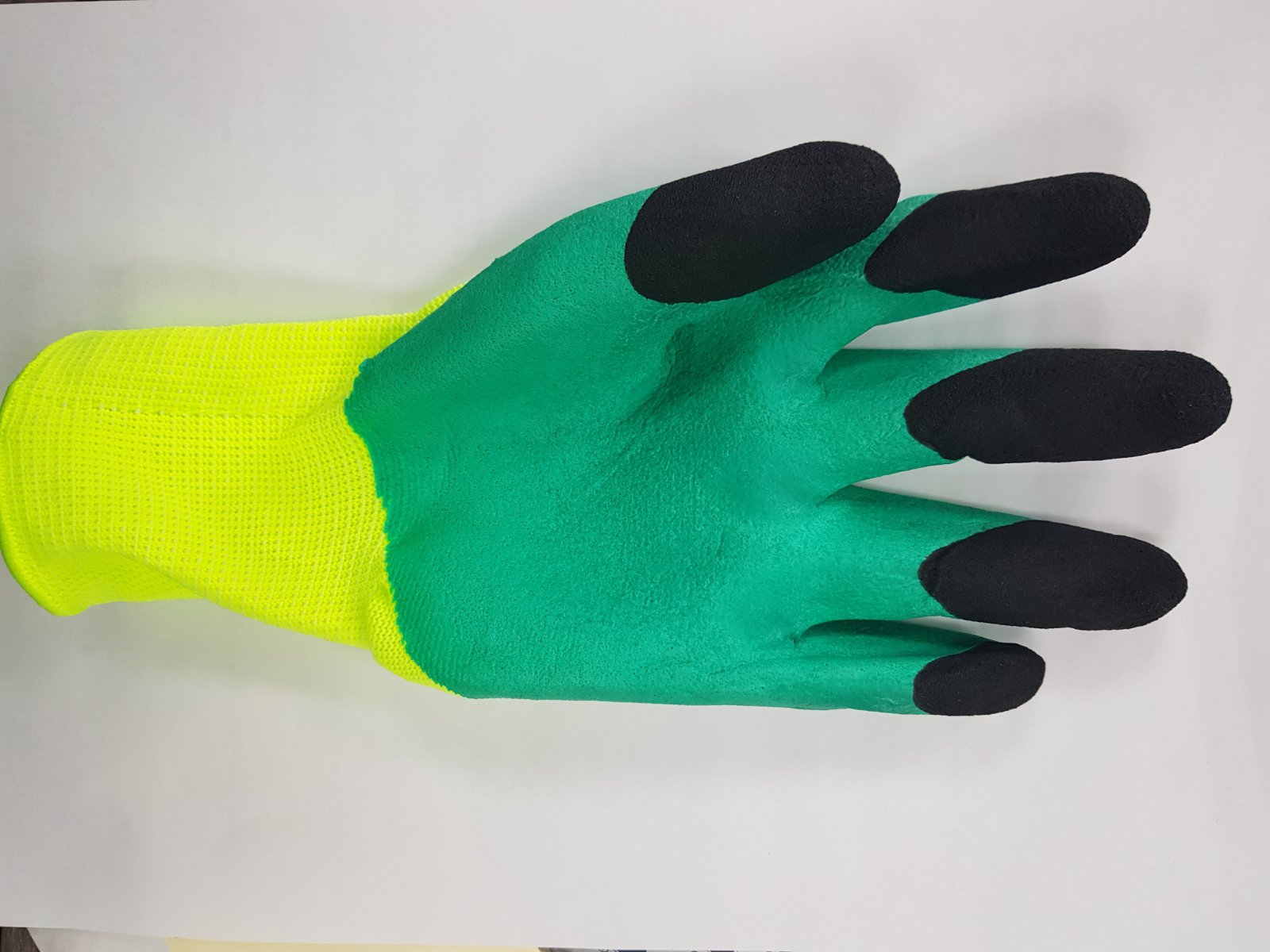 Перчатки нейлоновые САЛАТОВЫЕ с зеленым вспененым латексом с ЧЕРНЫМИ ПАЛЬЦАМИ и 12/720 В12