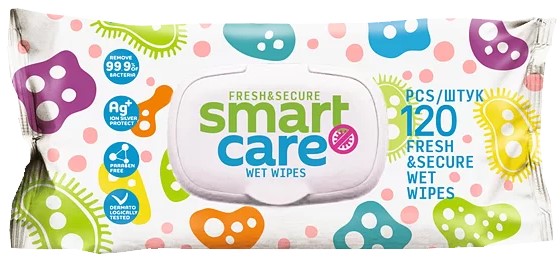 Салфетки влажные Для всей семьи Smart Care антибактериальные , без запаха. Мягкая натуральная основа. Безопасная и эффективная пропитка.