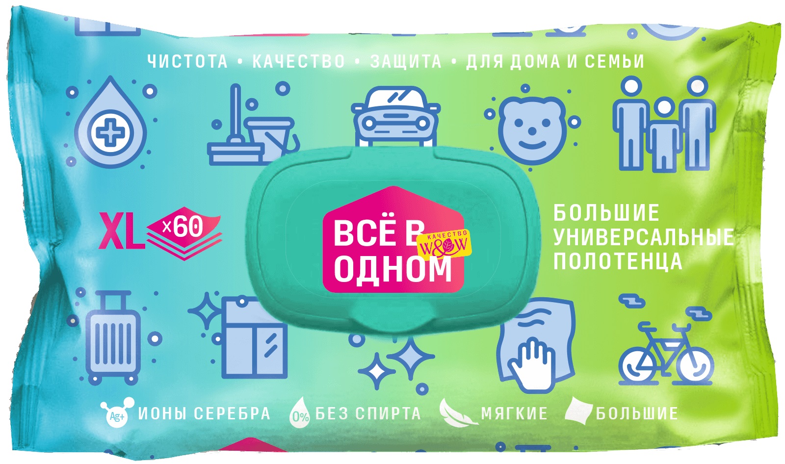 Главная / Средства личной гигиены / Влажные салфетки / Влажные ПОЛОТЕНЦА для дома и семьи 60 шт с клапаном /10/