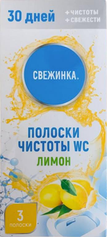Главная / Чистящие и моющие средства / Чистящие порошки / Освежитель (ПОЛОСКА для унитаза Свежинка лимон 3шт /12/