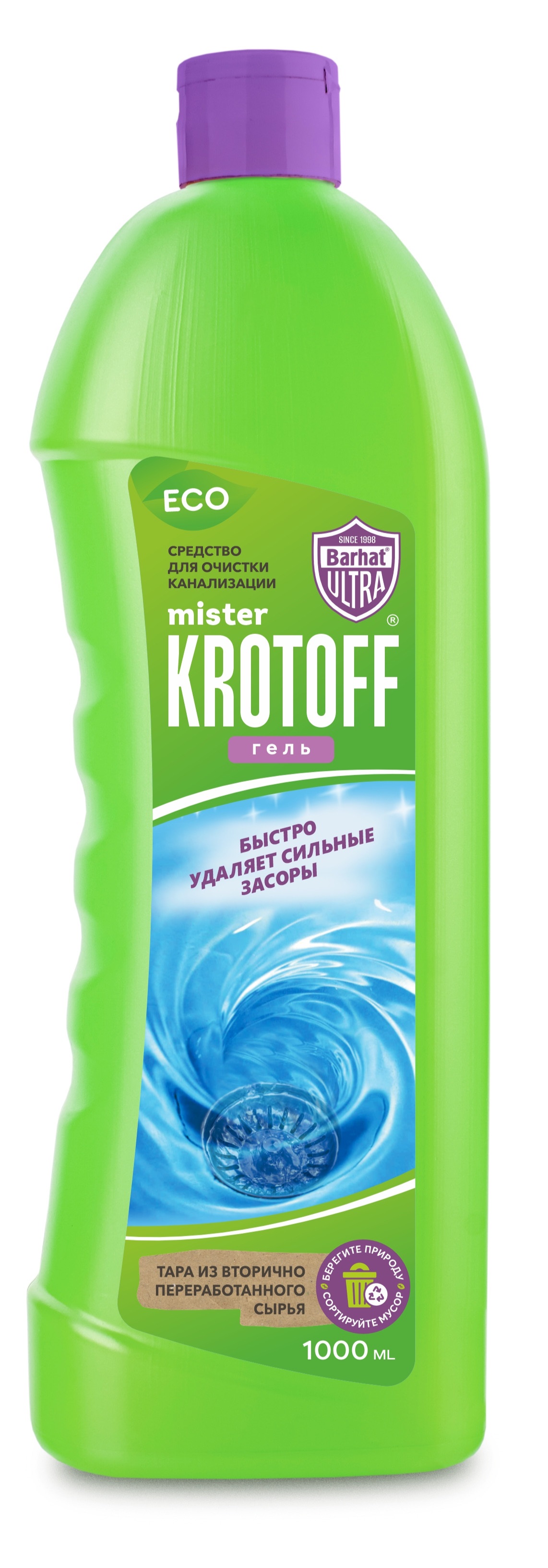 Средство для очистки канализационных труб Мистер КРОТОФФ- гель быстро устранит сильные засоры в канализационных стоках, эффективно растворяет волосы, грязь, остатки жира и пищи и другие загрязнения. Нейтрализует неприятные запахи.