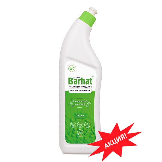 Главная / Чистящие и моющие средства / Жидкие чистящие средства / BARHAT для сантехники чистящее средство ГЕЛЬ с ЩАВЕЛЕВОЙ кислотой 750гр/21/ Б332