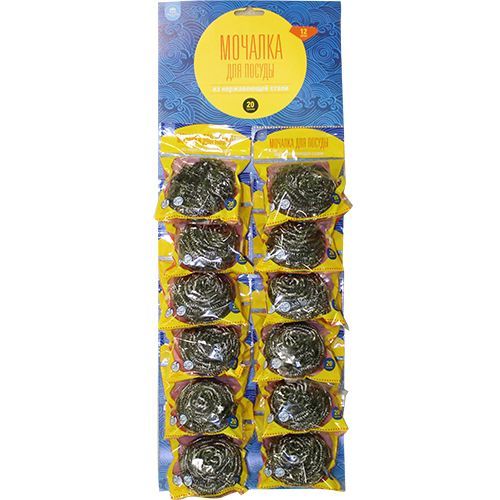Главная / Губки хозяйственные и салфетка для уборки / Губки для посуды / Губка металлическая АКВАМАГ на карте 12шт. /50/ (20г.) НЕРЖАВЕЙКА СП-101