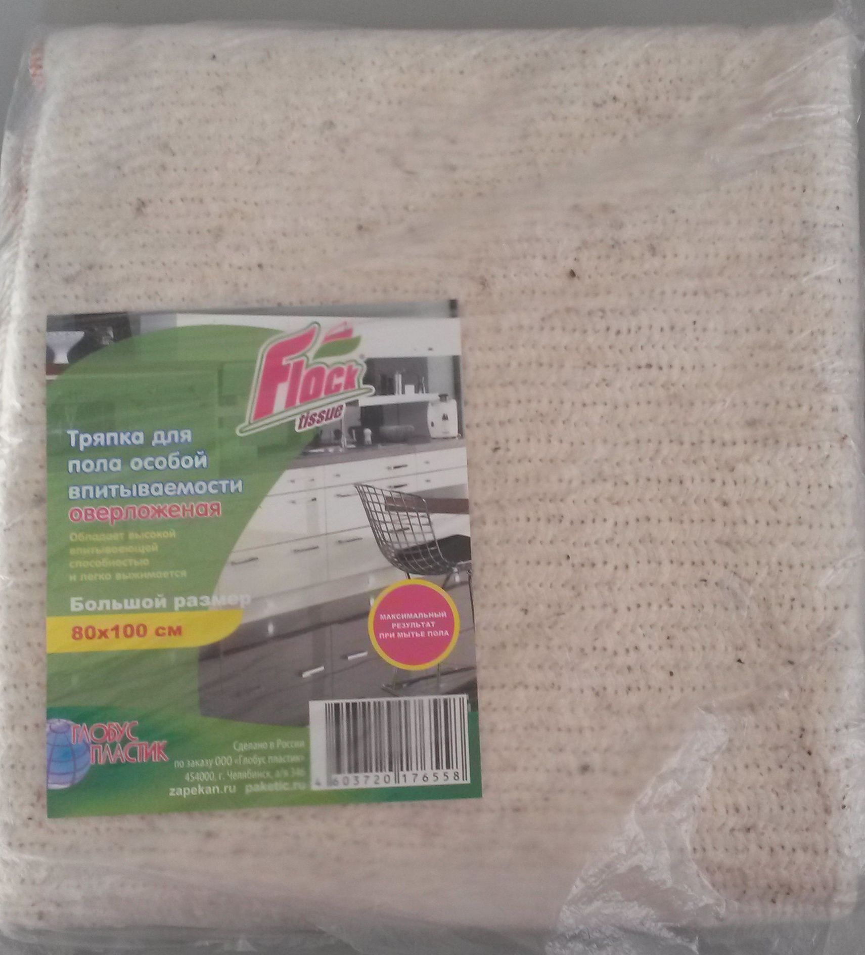 Главная / Губки хозяйственные и салфетка для уборки / Салфетки для уборки / Тряпка (салфетка) для пола хлопок белая Flock (80*100) 1шт оверлож. /20/
