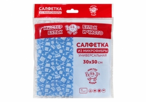 Главная / Губки хозяйственные и салфетка для уборки / Салфетки для уборки / Салфетка из микрофибры "Мистер БУЛЬК" 30*30см/50/ СХ007