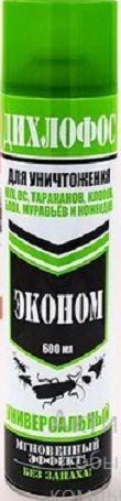 Дихлофос ЭКОНОМ универсальный БЕЗ ЗАПАХА предназначен для уничтожения мух, ос, тараканов, клопов, блох, муравьев,кожеедов.