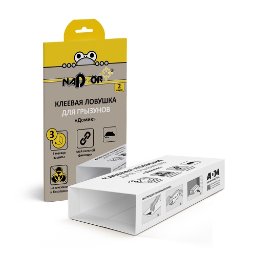 Главная / Инсектициды / Средства от мышей, крыс / !!!NADZOR Клеевая ловушка для грызунов Домик 2шт /50/ NASDFR1