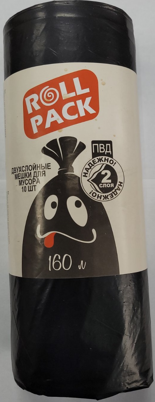 Главная / Мешки для мусора, пакеты для продуктов / Мешки для мусора / РОЛЛ ПАК Мешки для мусора ПВД 160л. 10шт черные 45мкр 610 г /20/ УФАПАК