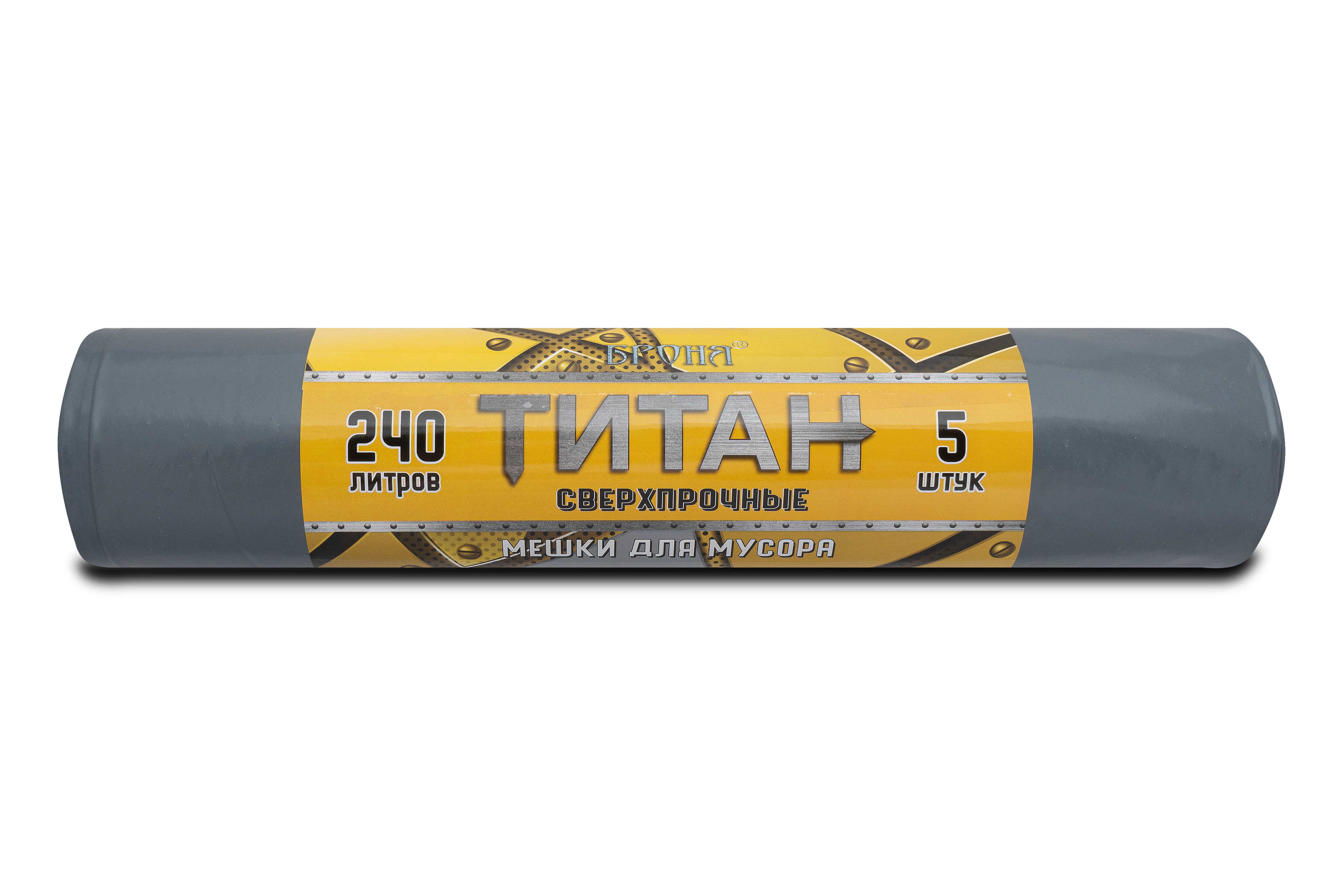 ТИТАН Мешки для мусора 240л.5 шт ПВД 2сл 80мкр 100*130 вес 970гр СЕРЫЕ /10/ ТТ-ВР-240/5/ 10/с