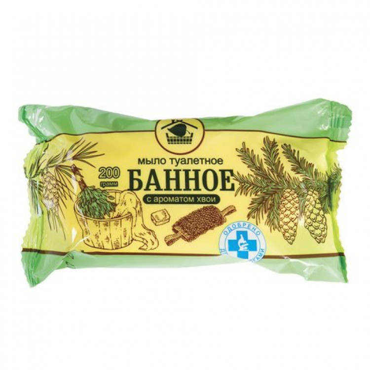 Мыло туалетное "Банное" марки "Ординарное" с ароматом хвои изготовлено из высококачественных натуральных жиров и масел