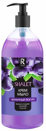 Главная / Мыло / Туалетное жидкое / SHALET Жидкое крем-мыло увлажняющее с курком ЧЕРНИЧНЫЙ ЙОГУРТ 1л./8/ 3118