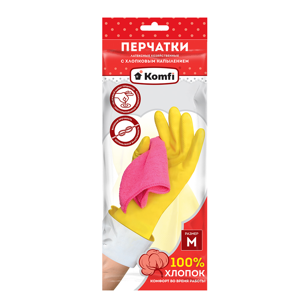 Перчатки латексные с хлопковым напылением /M/ KOMFI /12/240/