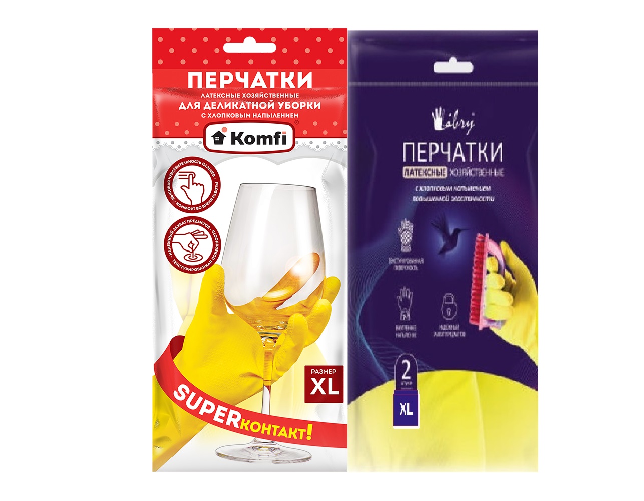 Главная / Перчатки / Резиновые (латексные) / KOMFI/ LIBRY Перчатки латексные с хлопковым напылением /XL/ /12/240/