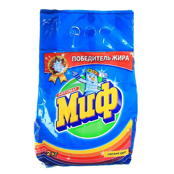 Этот порошок обладает пониженным пенообразованием и предназначен для стирки в машинах любого типа. В состав Мифа входит целый ряд компонентов, благодаря которым белье после стирки становится чистым и свежим.