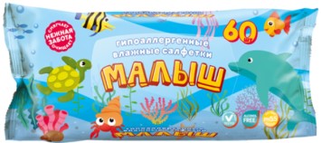 Главная / Средства личной гигиены / Влажные салфетки / Детские влажные салфетки Малыш Рыбки 60 шт БЕЗ клапана /20/